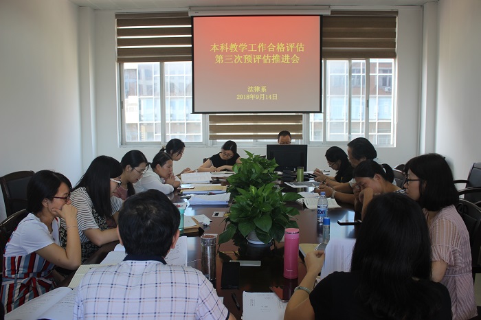 9月14日下午,法律系在文科楼五楼会议室召开法律系本科教学工作合格评估第三次预评估推进会,作迎评工作的最后部署,法律系系主任邹雄主任以及全体教职工参加本次会议。
