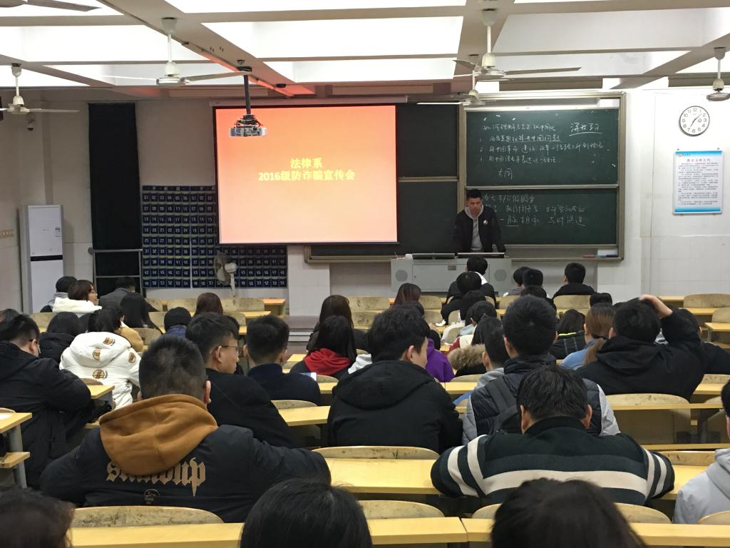 为帮助法律系学生认清不良网贷的危害,提高安全防范意识,法律系开展“防范校园贷诈骗”为主题的抵制不良网贷宣传教育班会,班会由各年级辅导员老师主持。