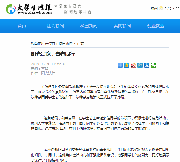 【外媒报道】大学生网报:阳光晨跑,青春同行
