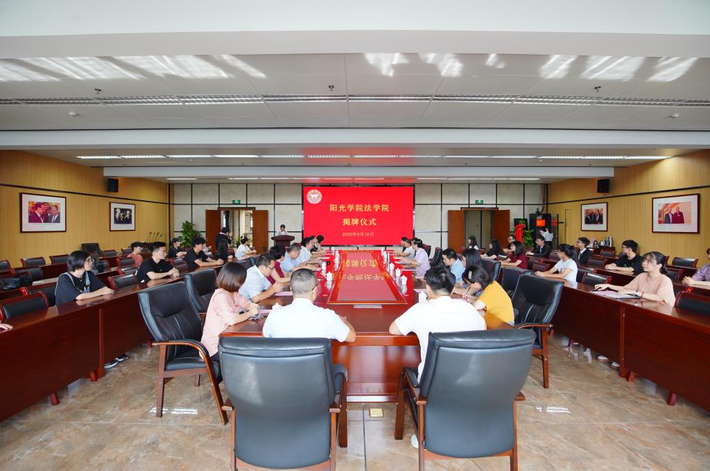 9月18日上午,阳光学院法学院揭牌仪式在行政楼720会议室举行。乔海曙校长、陈少平书记、罗仲尤执行校长、张红霞副校长出席揭牌仪式,法学院全体教职工及学生代表参加,党总支副书记黄玲主持揭牌仪式。