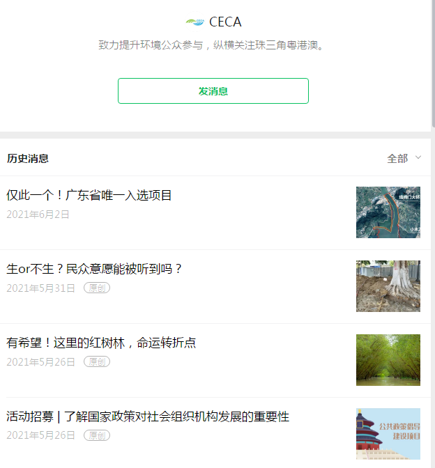环境公益社会组织跨境环保关注协会(简称CECA)通过定期查阅政府有关国土空间规划和环境影响评价的公示,对比滨海湿地开发的工程规划与国家环保政策的相符性,发现实施中的问题,在微信公众号分享。对于深圳市生态控制线的调查有大量的数据可以引用。