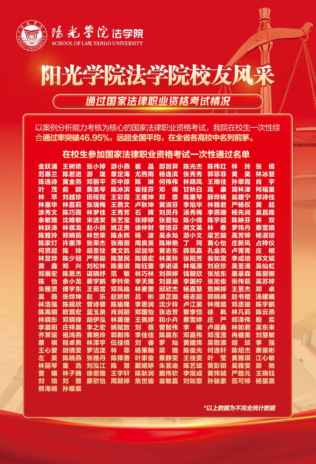 l 法律职业资格考试通过率位居省内同类院校前茅,一次性综合通过率高达46.95%;