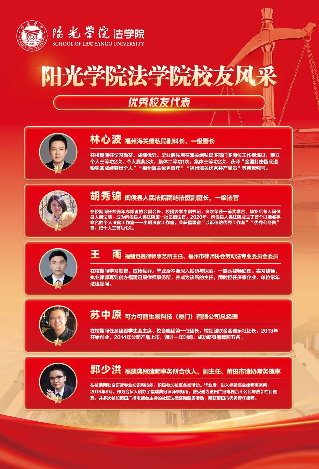 培养目标:阳光学院法学专业旨在培养德才兼备,具有扎实的专业理论基础、突出的法律实务能力和合理的知识结构,从事法院、检察院、行政机关公务员,企事业单位法务专员,律师等岗位工作的高级应用型法律人才。
